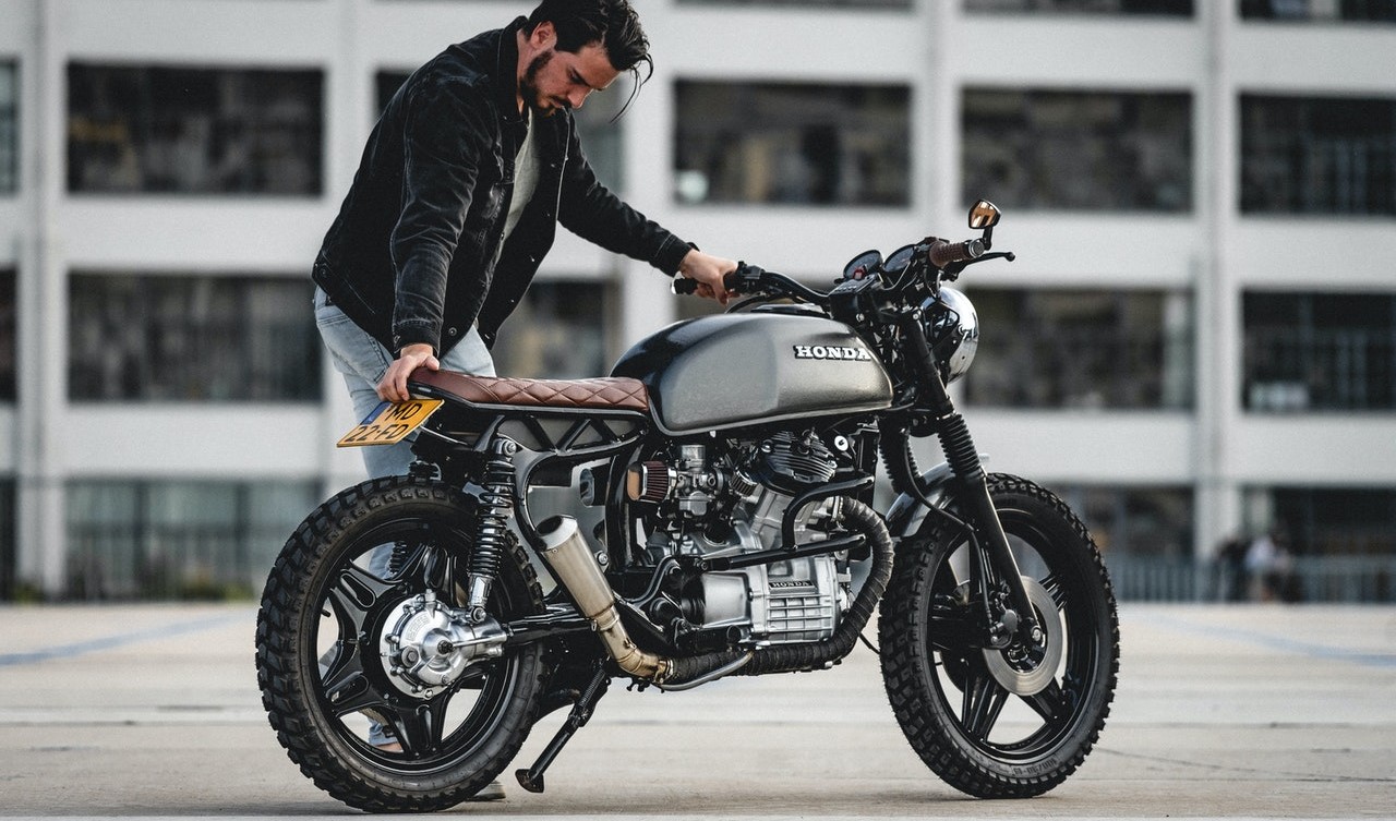 Foto oleh Gijs Coolen: https://www.pexels.com/id-id/foto/foto-fokus-selektif-pria-berjaket-hitam-parkir-sepeda-motor-honda-cafe-racer-hitam-2549942/
